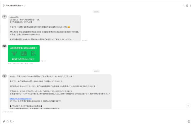 資格取得のために、具体的な話や、資格取得者の話を聞いてみたいという方は各ドローンスクールが公式アカウントを持っているか確認してみるのもおすすめです。