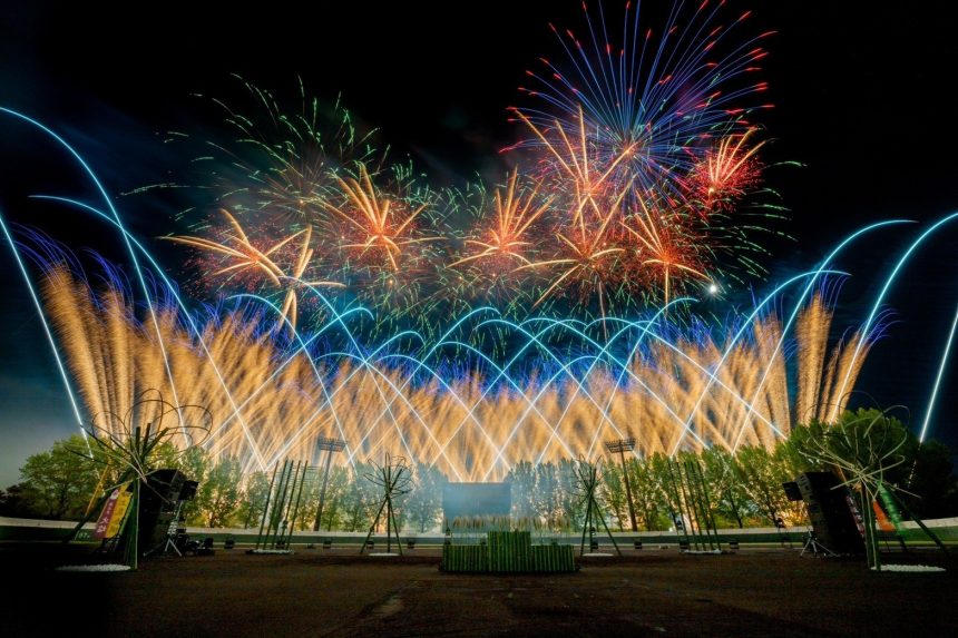 上杉家ゆかりの城下町・米沢という舞台ならではの演出が展開され、ドローンで描かれる武将のシルエットやエンブレム、太鼓と花火のシンクロ演出が観客を魅了します。
